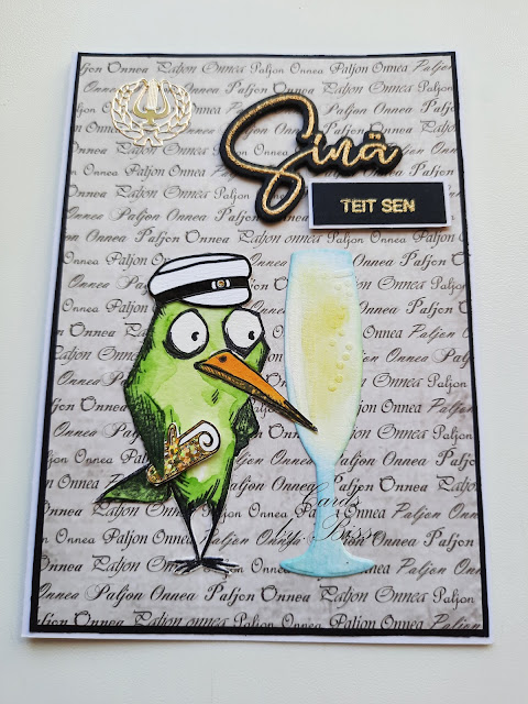 Pojalle vähän rouheempaa.Ja pikkusemmalla ristillä.Risti ja teksti stanssattu.T-paita leimattu värilliselle kartongille.Reunoja tummennettu musteella.Leima on Visible Imagen :Nothing to wear.Leima löytyy täältä .